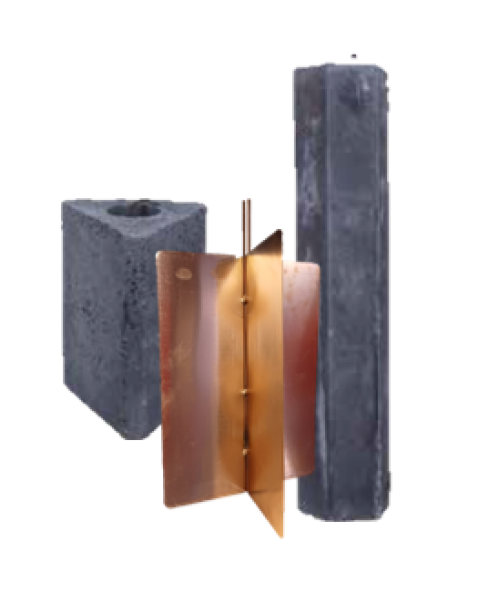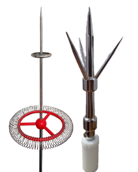 Accesorio de montaje en sistemas de puesta a tierra fabricado en aluminio o latón función básica es la permitir el montaje de manera directa de un pararrayos o punta terminal y a su vez, realizando la conexión del cable de tierra al mismo para tener la línea de continuidad para el desahogo de la descarga.
