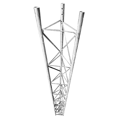 Torre triangular fabricada de acero al carbono en diferentes formas como tubo, redondo y placa que son elementos usados en su fabricación.